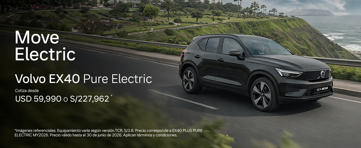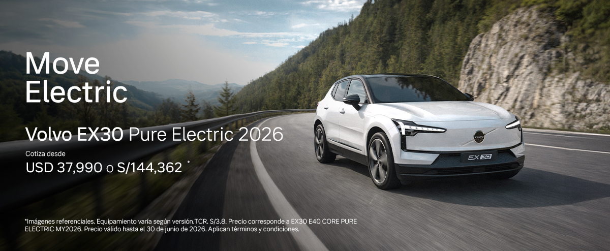 EX30 Pure Electric Imágenes referenciales. Equipamiento varía según versión. TCR. S/3,8, puede variar según el tipo de cambio del día en que se realice la transacción. Precio corresponde a EX30 E40 CORE PURE ELECTRIC MY2026. Precio válido hasta el 30 de junio de 2026 o hasta agotar stock de 5 unds, lo que suceda primero.Promoción […]