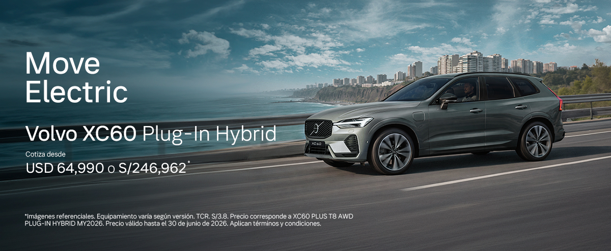 XC60 PLUG-IN HYBRID Imágenes referenciales. Equipamiento varía según versión. TCR. S/3,8, puede variar según el tipo de cambio del día en que se realice la transacción. Precio corresponde a XC60 PLUS T8 AWD PLUG-IN HYBRID MY2026. Precio válido hasta el 30 de junio de 2026 o hasta agotar stock de 5 unds, lo que suceda […]