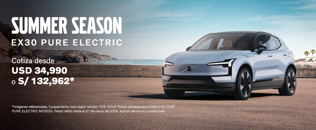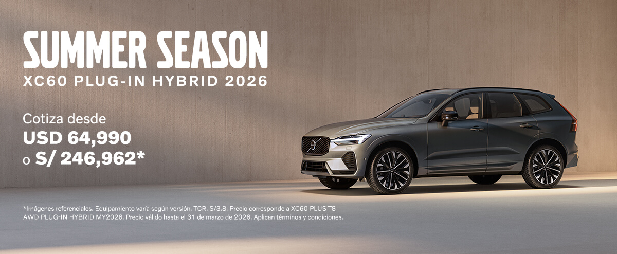 *Imágenes referenciales. Equipamiento varía según versión, año de modelo y de producción. T.C.R S/ 3.80. La información brindada en el presente documento puede variar y el equipamiento final de la unidad será el detallado en la cotización individual remitida al cliente. Los colores, los interiores y las imágenes de los vehículos no son una representación fiel de los colores y/o productos reales. Se recomienda visitar un concesionario Volvo para ver el vehículo real.