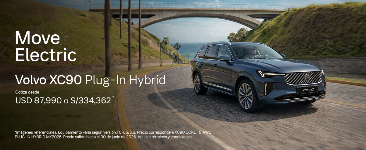 XC90 PLUG-IN HYBRID Imágenes referenciales. Equipamiento varía según versión. TCR. S/3,8, puede variar según el tipo de cambio del día en que se realice la transacción. Precio corresponde a XC90 CORE T8 AWD PLUG-IN HYBRID MY2026. Precio válido hasta el 30 de junio de 2026 o hasta agotar stock de 5 unds, lo que suceda […]